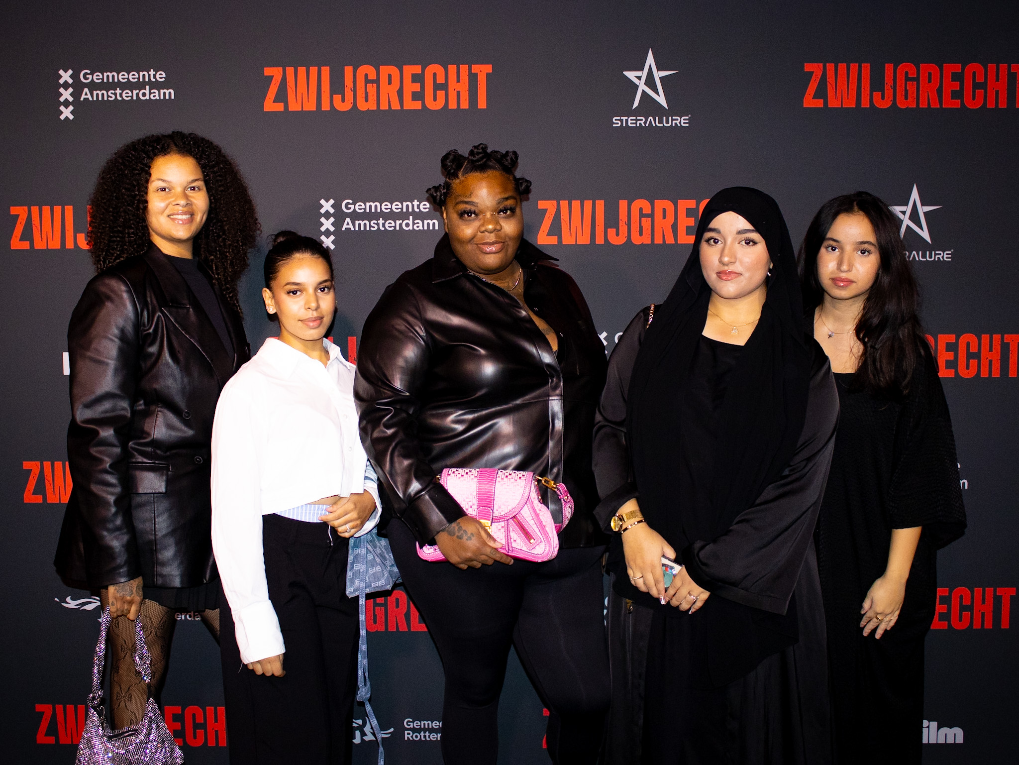 Nieuwe gezichten in een historisch theater: op 30 september vond de film- en muziekpremière van het project Zwijgrecht plaats in een volgepakt Tuschinski in Amsterdam. De genodigden maakten hun debuut op de rode loper en werden warm verwelkomd door een daka marrakchia, een Marokkaanse drumband. Na dit ontvangst volgde een pers- en fotomoment bij de grote Zwijgrecht-wand.